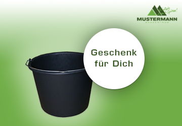 Wenn Du im Aktionszeitraum vom 03.11. – 31.12.2024 eine Bestellung in unserem Onlineshop tätigst und dabei den Baueimer zu Deinem Warenkorb hinzufügst, erhälst Du diesen als Geschenk dazu! Per Klick auf das Banner gelangst Du direkt zum Gratis-Baueimer.
